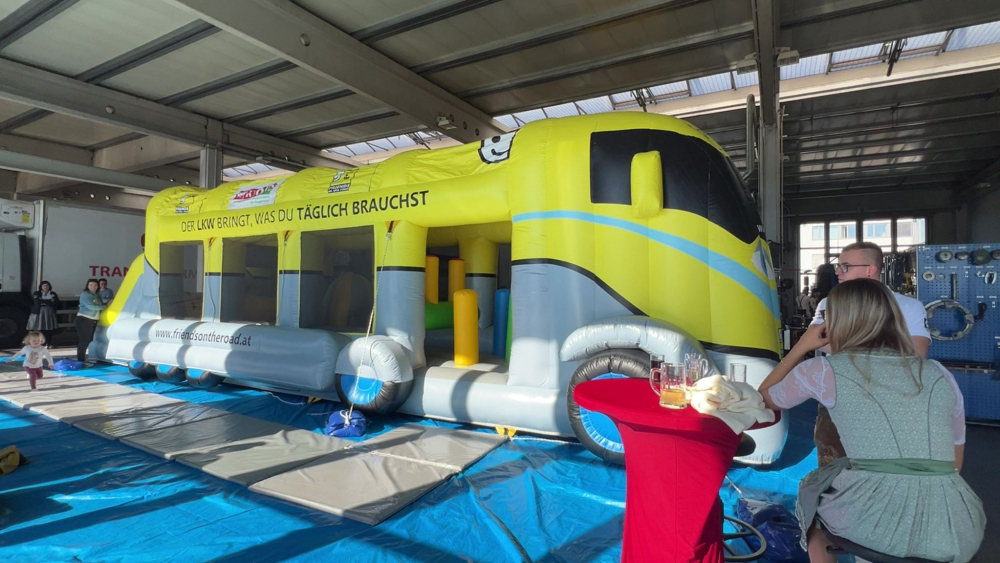 Es freut uns sehr, dass so viele Kunden, Freunde, Geschäftspartner und Wegbegleiter unserer Einladung gefolgt sind. Egal ob in luftiger Höhe mit dem Hubsteiger der FF Wartberg / Aist oder auf dem Kopf stehend im Überschlagssimulator oder bei einem Duell an der Schießbude oder bei einer Testfahrt mit den neuesten LKWs von MAN, Iveco, Volvo oder Renault oder bei Getränken und Weißwürsten in der großen Halle – überall gute Gespräche und freudige Gesichter. Und für unsere kleinen Gäste gab es eine tolle Hüpfburg von Friends on the Road.